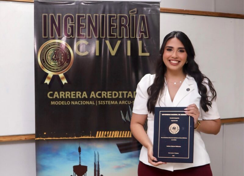 «Análisis de la Influencia de los Pesos de los Elementos Estructurales y no Estructurales, en el Costo Final del Proyecto de una Obra», se denomina el Trabajo Final de Grado (TFG) presentado por la ahora ingeniera Maria Laura Gill Romero, como prueba final para egresar de la carrera de Ingeniería Civil de la Facultad de Ingeniería de la Universidad Nacional de Asunción (FIUNA). La defensa del trabajo se realizó el pasado viernes 19 de Diciembre del 2025 en la Institución.
