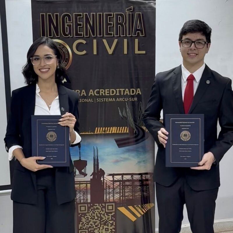 «Reutilización de Aguas Residuales en una Planta Hormigonera», se denomina el Trabajo Final de Grado (TFG) presentado por los ahora ingenieros Daiana Noelia Ramos Caballero y Sebastián Andrés Chen Verdún, como prueba final para egresar de la carrera de Ingeniería Civil de la Facultad de Ingeniería de la Universidad Nacional de Asunción (FIUNA). La defensa del trabajo se realizó el jueves 18 de Diciembre del 2025 en la Institución.