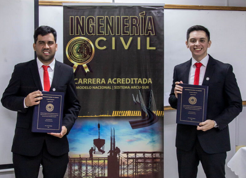 “Optimización del Drenaje Pluvial de la Facultad de la FIUNA con Implementación SUDS (Sistema Urbano de Drenaje Sostenible)”, se denomina el Trabajo Final de Grado (TFG) presentado por los ahora ingenieros Adriano Samaniego Páez y Gustavo Simón Godoy Villar, como prueba final para egresar de la carrera de Ingeniería Civil de la Facultad de Ingeniería de la Universidad Nacional de Asunción (FIUNA). La defensa del trabajo se realizó el lunes 17 de Noviembre del 2025 en la Institución.
