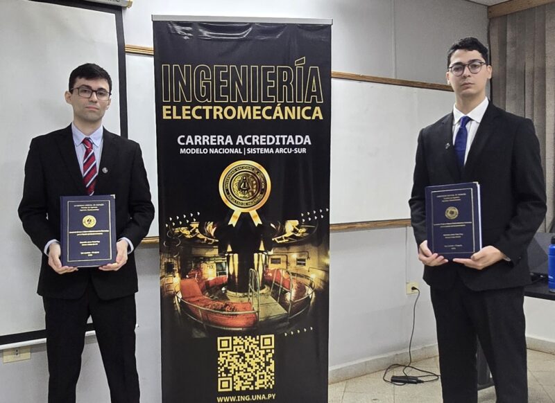 «Modelado 3D de un Sistema Electromecánico Controlado para la Gestión de Estacionamientos», se denomina el Trabajo Final de Grado (TFG) que presentado por los nuevos ingenieros Sebastián Javier Rolón Ríos y Gastón Valdez Bernal, como prueba final para egresar de la carrera de Ingeniería Electromecánica de la Facultad de Ingeniería de la Universidad Nacional de Asunción (FIUNA). La defensa del trabajo se realizó el viernes 28 de Noviembre del 2025 en la Institución.