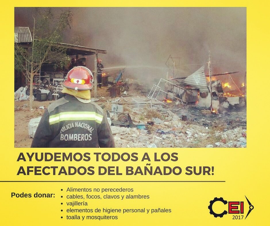 <![CDATA[El Centro de Estudiantes (CEI) de la Facultad de Ingeniería de la Universidad Nacional de Asunción (FIUNA), insta a toda la comunidad educativa a sumarse a la campaña solidaria que lleva adelante con el objetivo de ayudar a los compatriotas afectados del Bañado Sur.