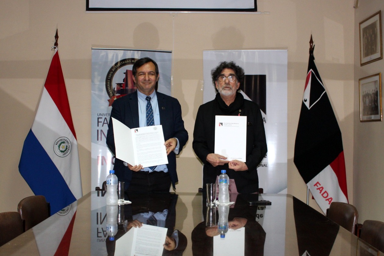 Dicho convenio fue firmado por el Decano de la Facultad De Arquitectura, Diseño y Arte de la Universidad Nacional de Asunción (FADA-UNA), Prof. Arq. José Insfrán Guerrero y por el Decano de la Facultad de Ingeniería de la Universidad Nacional de Asunción (FIUNA), Prof. Dr. Rubén Alcides López Santacruz.