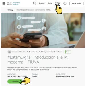 La Facultad de Ingeniería de la Universidad Nacional de Asunción (FIUNA) a través de la Academia Local Cisco y el Departamento de Desarrollo, Capacitación y Evaluación Administrativa, invitan a participar de los cursos de Transformación Digital, para conocer acerca de los procesos y recibir orientaciones sobre la inscripción y temas generales para el logro efectivo de los certificados, se realizará una charla informativa vía WEBEX, el día viernes 10 de octubre, a las 11:00 hs.