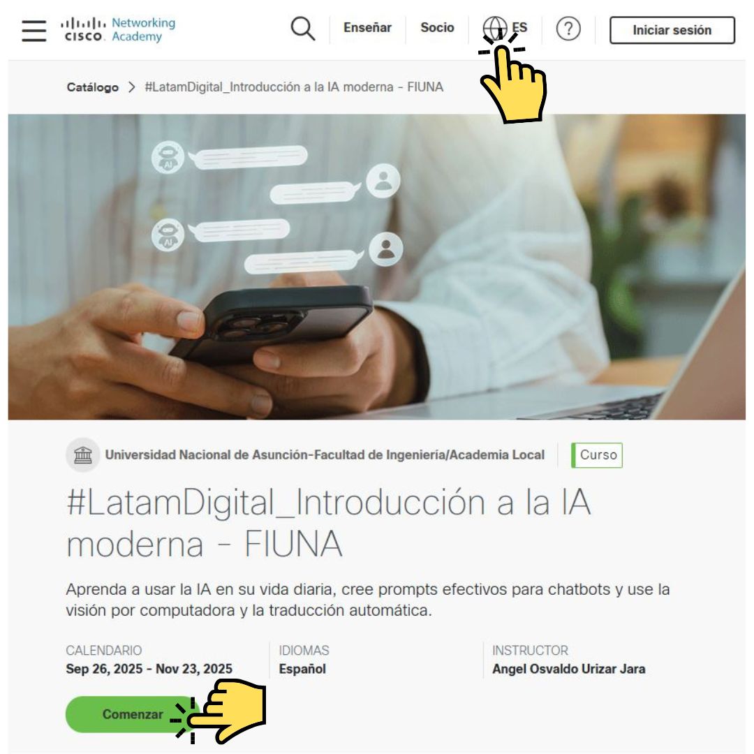 Introducción a la IA moderna es un curso para principiantes diseñado para ayudarte a aprender conceptos clave de IA y practicar con aplicaciones con IA. Comenzarás con una visión general de la IA. Luego explorarás la visión por computadora usando una aplicación de fotos y traducción automática con una herramienta de traducción en línea. Finalmente, profundiza en los chatbots, llenos de consejos para escribir mejores indicaciones y práctica con más de 10 chatbots populares y herramientas de inteligencia artificial, que incluyen ChatGPT, Meta AI, Gemini, Google Translate, Claude, Hugging Chat, Notebook LM y más. - Uso de Computadoras y Dispositivos Móviles