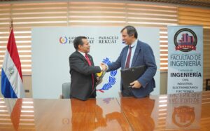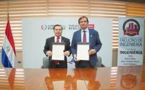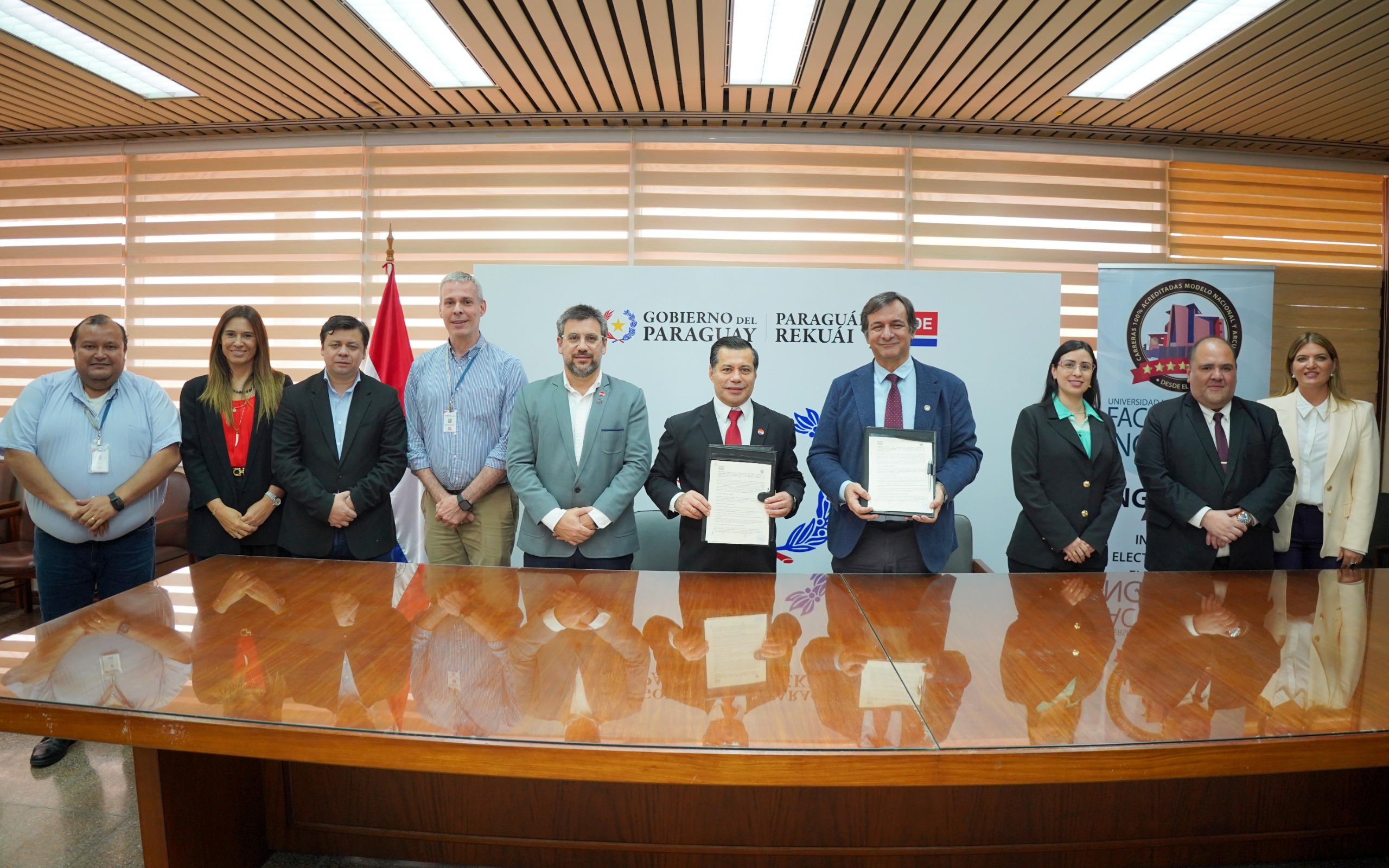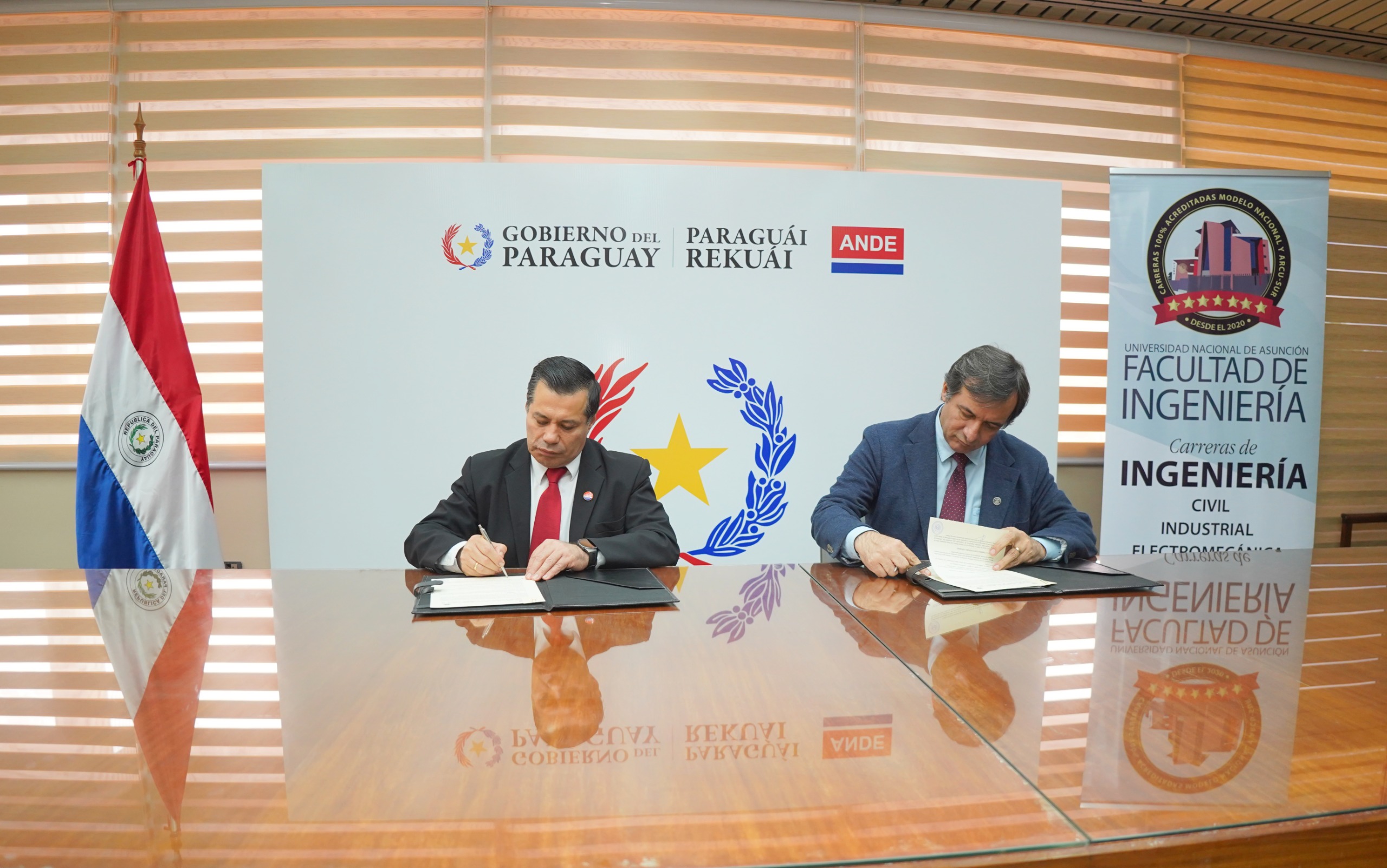Suscribieron dicho convenio el Ing. Félix Eladio Sosa Giménez, en su calidad de Presidente de la Administración Nacional de Electricidad y el Prof. Dr. Rubén Alcides López Santacruz, Decano de la Facultad de Ingeniería de la Universidad Nacional de Asunción (FIUNA).