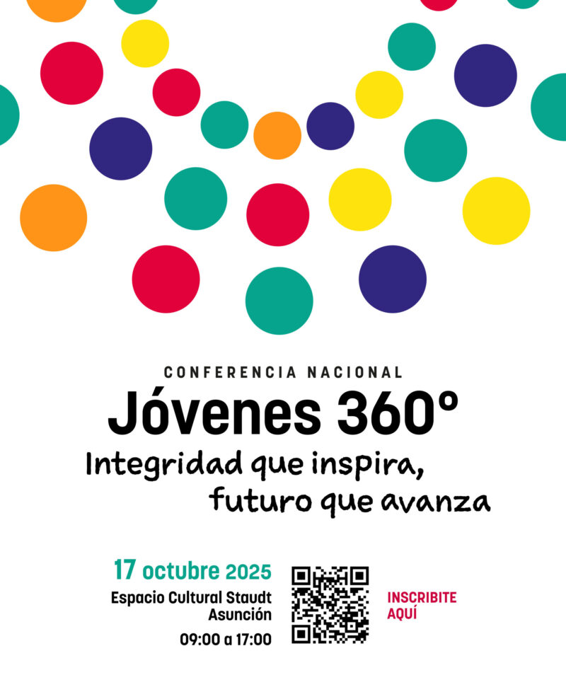 La Contraloría General de la República invita a la Conferencia Nacional Jóvenes 360°, a realizarse el próximo 17 de octubre de 2025, de 09:00 a 17:00 horas, en el Espacio Staudt ubicado en Iturbe 333, casi Mariscal Estigarribia, Asunción.