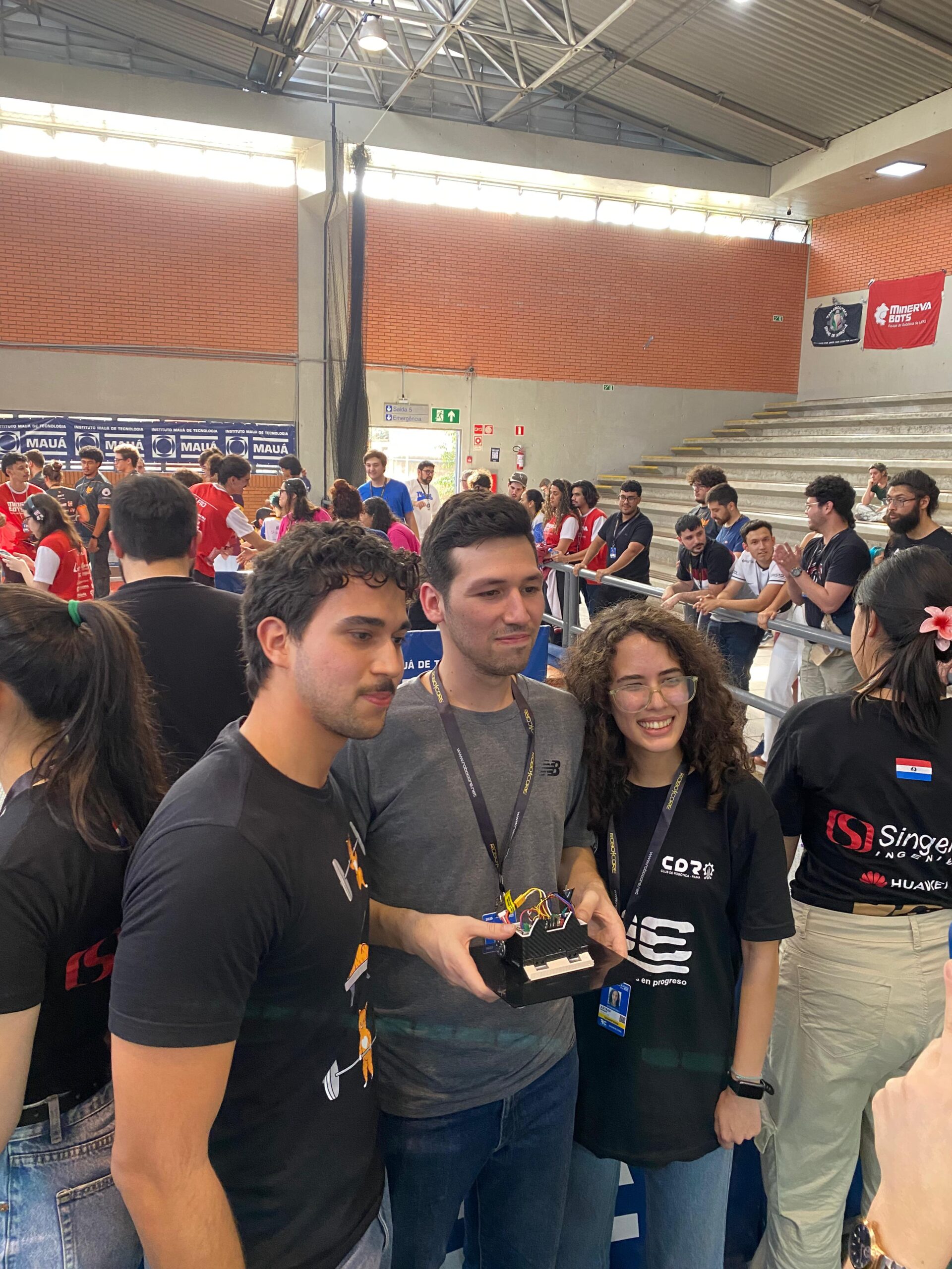 El evento reunió a universidades y clubes de robótica de distintas regiones del Brasil. La delegación paraguaya estuvo conformada por 47 estudiantes de la Carrera Ingeniería Mecatrónica de la FIUNA y los docentes Ing. Luis Poisson, Ing. Francisco González, Ing. Héctor Cardozo y Guillermo Galeano quienes representaron a la FIUNA en las categorías Mini Sumo Autónomo y Sumo 3 kg Autónomo.