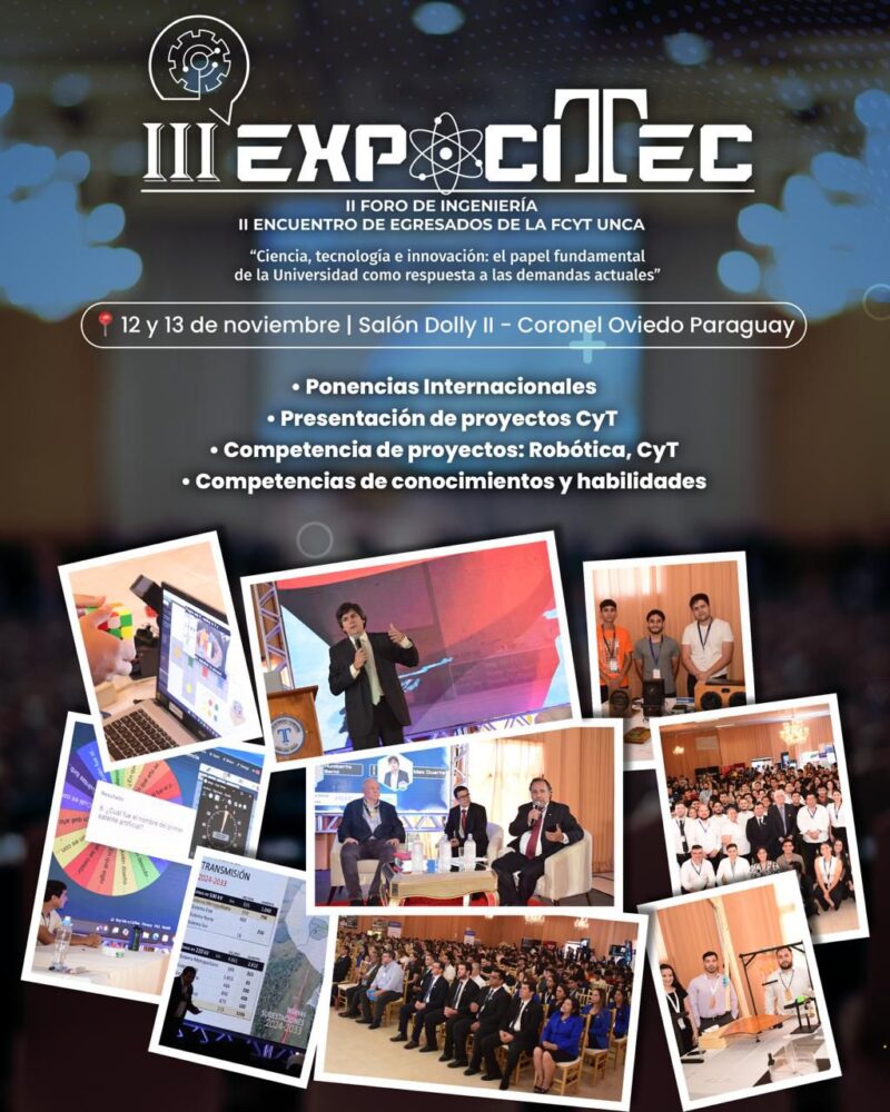 La Facultad de Ciencias y Tecnologías de la Universidad Nacional de Caaguazú, invita a participar de la 3ra Edición de la EXPOCITEC 2025, que se realizará los días 12 y 13 de noviembre del corriente, en Coronel Oviedo, Paraguay.