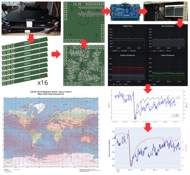 Investigadores de la Facultad de Ingeniería de la Universidad Nacional de Asunción (FIUNA) participaron recientemente en la publicación de un artículo en la revista Space Weather de la American Geophysical Union (AGU), titulado “Measurements of Forbush Decrease Events at the Center of the South Atlantic Magnetic Anomaly With Muon Detectors”. El trabajo presenta mediciones de rayos cósmicos secundarios en el centro de la Anomalía Magnética del Atlántico Sur (SAMA), una región donde el campo magnético terrestre es especialmente débil.