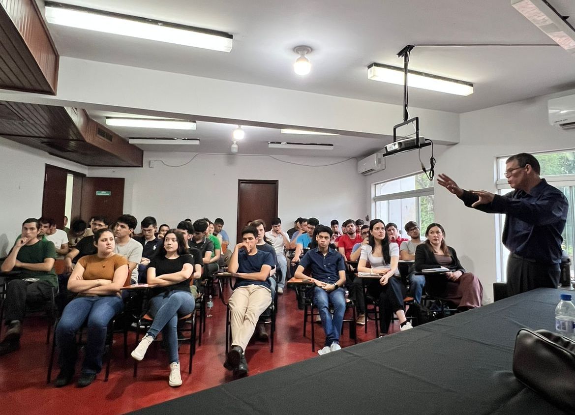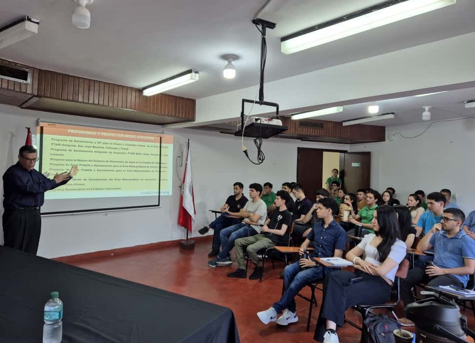El pasado miércoles 15 de Octubre del presente año, se realizó en la Facultad de Ingeniería de la Universidad Nacional de Asunción (FIUNA) Filial Ayolas, la charla técnica sobre el Proyecto de Saneamiento de la Ciudad de San Ignacio – Misiones, a cargo del Ing. Eduardo Godoy, especialista en Saneamiento de DAPSAN – MOPC. Durante la actividad se presentaron los principales componentes del proyecto, sus implicancias técnicas y ambientales, así como una síntesis del estado de las plantas de tratamiento de aguas residuales (PTAR) en el país.