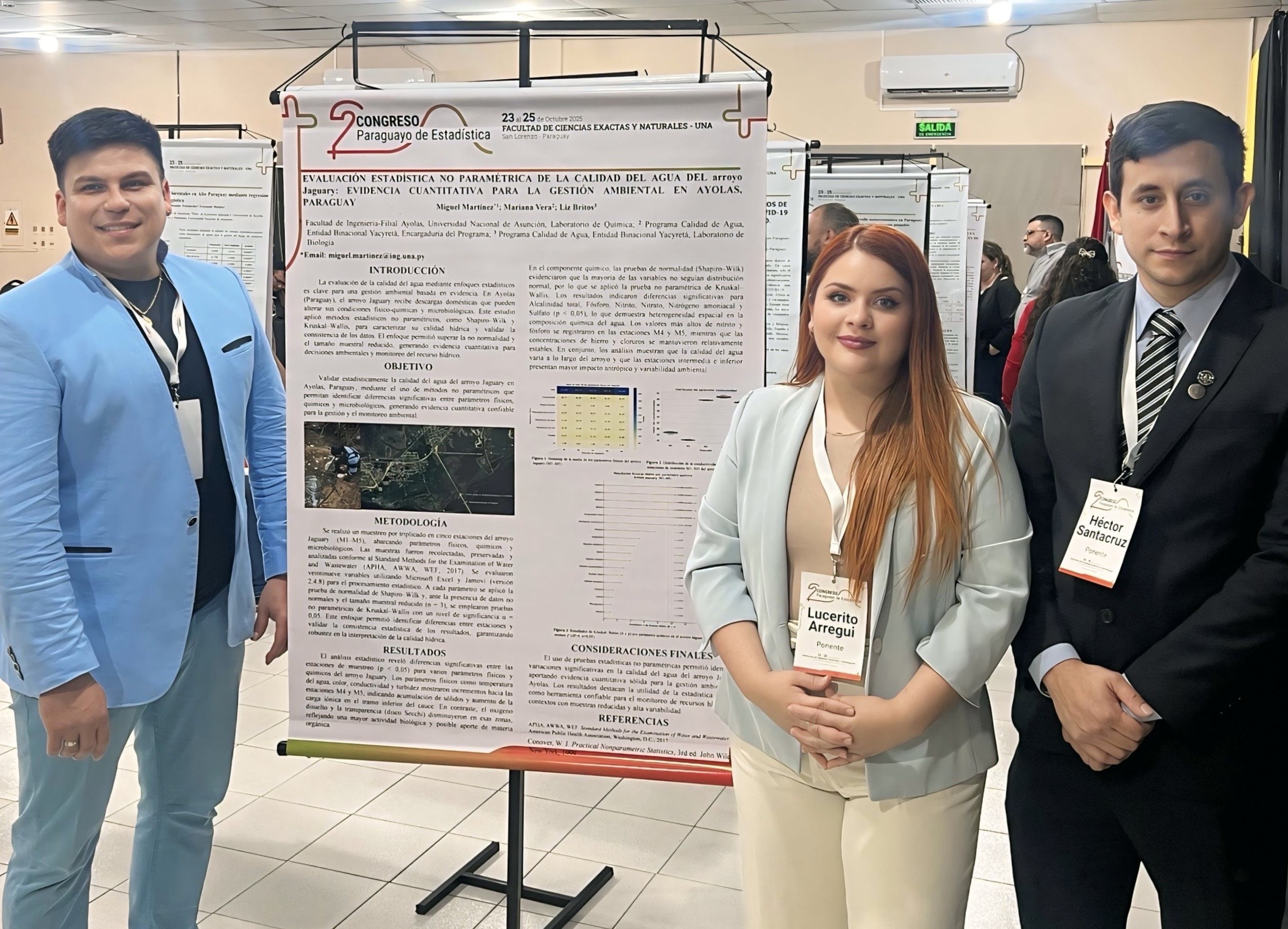 El Dr. Miguel Ángel Martínez Cabrera, la Ing. Lucerito Arregui Estigarribia y el Ing. Héctor Santacruz Leguizamón expusieron sus trabajos en el evento desarrollado del 23 al 25 de octubre de 2025 en la Facultad de Ciencias Exactas y Naturales (FACEN – UNA), enfocados en la aplicación de métodos estadísticos para la gestión del agua, la modelación hidráulica y la sostenibilidad ambiental.