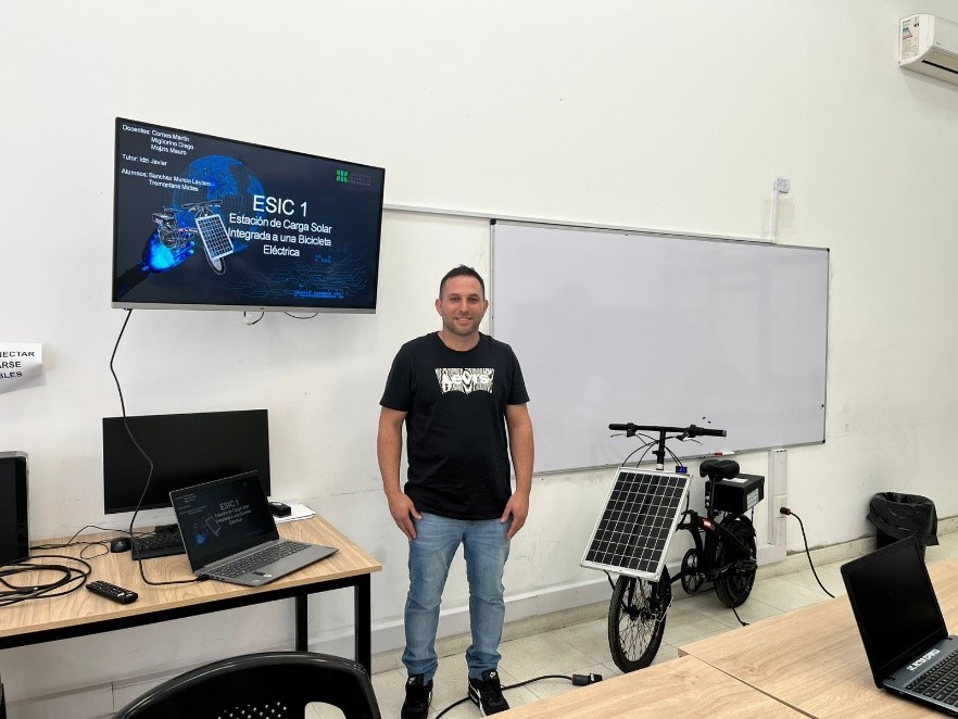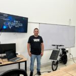 - Estación de carga solar integrada a una bicicleta eléctrica.