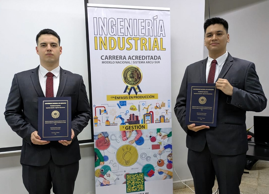 «Reducción de mermas en paneles de aislamiento térmico mediante Six Sigma y un sistema de monitoreo en tiempo real», se denomina el Trabajo Final de Grado (TFG) que presentaron los ahora ingenieros Fabio Eduardo Maidana Bogado y Rodrigo David Azcurra Irigoitia, como prueba final para egresar de la carrera de Ingeniería Industrial e Ingeniería Mecatrónica de la Facultad de Ingeniería de la Universidad Nacional de Asunción (FIUNA). La defensa del trabajo se realizó el viernes 28 de Noviembre del 2025 en la Institución.