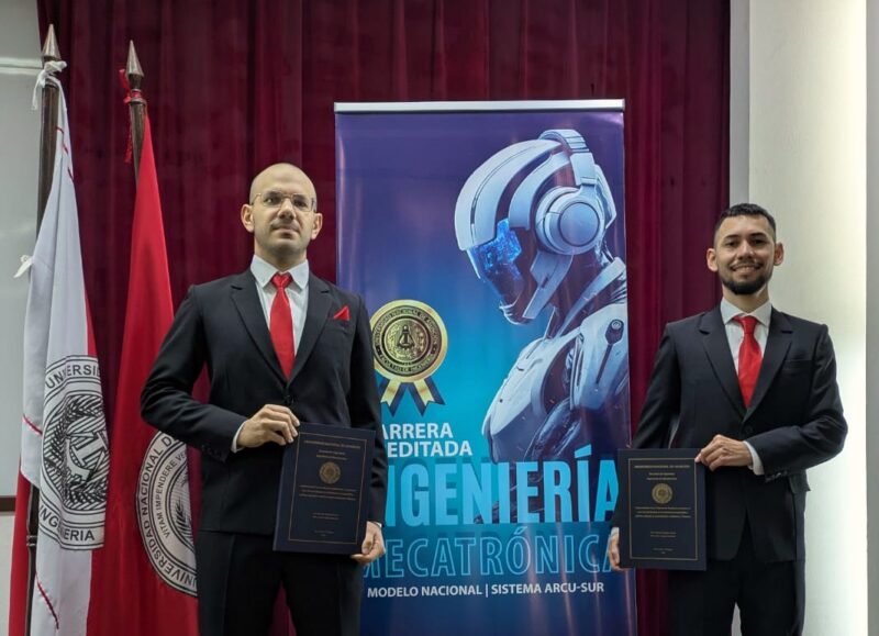 «Implementación de un Sistema de Monitoreo y Control en Lazo Cerrado Basado en la Plataforma CompactRIO y LabView Aplicado al Accionamiento de Motores Trifásicos», se denomina el Trabajo Final de Grado (TFG) presentado por los ahora ingenieros Juan Sebastián Mercado Allende y Walter Javier Ortigoza Santander, como prueba final para egresar de la carrera de Ingeniería Mecatrónica de la Facultad de Ingeniería de la Universidad Nacional de Asunción (FIUNA). La defensa del trabajo se realizó el miércoles 10 de Diciembre del 2025 en la Institución.