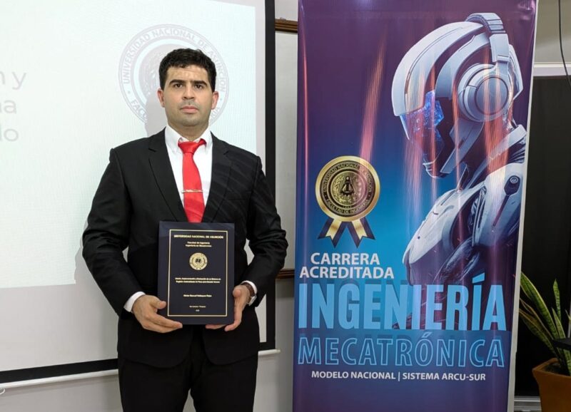 «Diseño, implementación y evaluación de un sistema automatizado de registro de peso para ganado bovino», se denomina el Trabajo Final de Grado (TFG) presentado por el ahora ingeniero Héctor Samuel Velázquez Rojas, como prueba final para egresar de la carrera de Ingeniería Mecatrónica de la Facultad de Ingeniería de la Universidad Nacional de Asunción (FIUNA). La defensa del trabajo se realizó el viernes 19 de Diciembre del 2025 en la Institución.