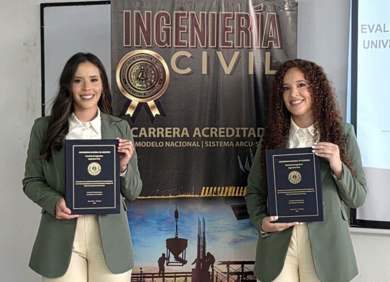 «Evaluación de la Condición Superficial de las Vías del Campus de la Universidad Nacional de Asunción Mediante el Método del Índice de Condición del Pavimento», se denomina el Trabajo Final de Grado (TFG) presentado por las ahora ingenieras Lisa María Paredes Bogarín y Ada Elizabeth Vera Barberán, como prueba final para egresar de la carrera de Ingeniería Civil de la Facultad de Ingeniería de la Universidad Nacional de Asunción (FIUNA). La defensa del trabajo se realizó el lunes 29 de Diciembre del 2025 en la Institución.