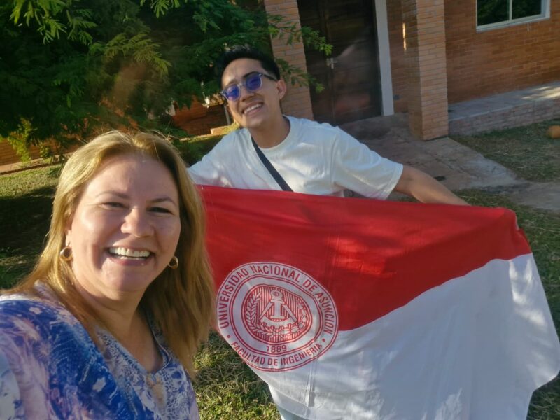 Desde su llegada al país, Felipe fue recibido en el aeropuerto por la Coordinadora de Movilidad Académica de la FIUNA, Lic. Benicia Silvera, junto con la representante del Centro de Estudiantes de Ingeniería (CEI), Dulce Morínigo Lobo, quienes brindaron el acompañamiento inicial. Este recibimiento refleja no solo el espíritu de compañerismo de nuestra comunidad universitaria, sino también la hospitalidad paraguaya, característica distintiva que la FIUNA promueve y valora en cada experiencia de movilidad.