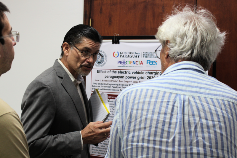 Durante el primer coffee break, se habilitó un espacio para la exposición de pósteres científicos, en el que estudiantes del Doctorado en Ciencias de la Ingeniería (1.ª cohorte) de la FIUNA presentaron sus propuestas de investigación a desarrollar en sus respectivas tesis doctorales. Este espacio permitió a los asistentes interactuar directamente con los autores, lo que generó oportunidades de networking y de discusión académica.