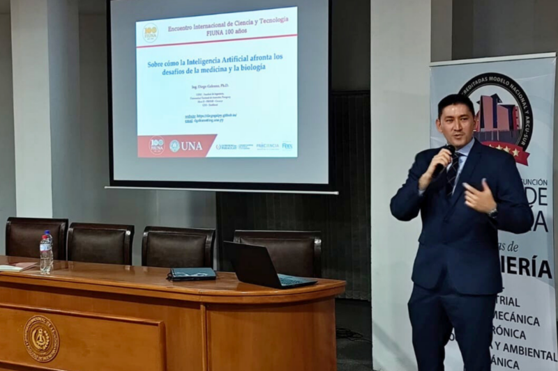 Posteriormente, el Prof. Dr. Diego Galeano expuso sobre “Cómo la Inteligencia Artificial afronta los desafíos de la medicina y la biología”, abordando las aplicaciones de modelos de aprendizaje automático en el análisis de datos biomédicos. Por su parte, el Prof. Dr. Darío Alviso presentó la conferencia “El uso del hidrógeno verde en Paraguay”, en la que analizó el potencial de este vector energético en el contexto nacional y su papel en el futuro de la transición energética.