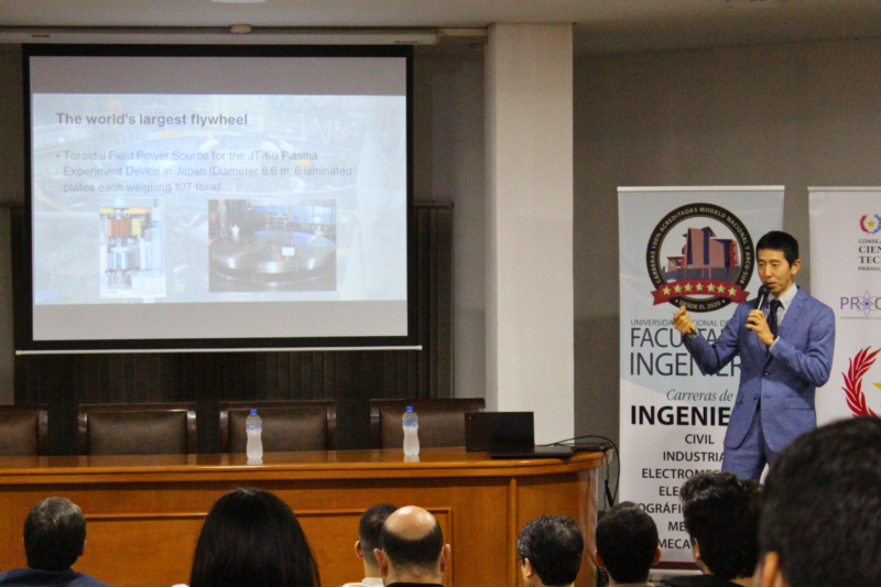 Seguidamente, el Prof. Dr. Shuhei Kato (Nihon University, Japón) expuso sobre “Tecnologías de Energía Eléctrica para los Próximos 100 Años”, en el que abordó los desafíos de la transición energética global. Durante su presentación, destacó que la sostenibilidad energética no solo depende de la eficiencia, sino también de la durabilidad de los sistemas, y señaló la importancia de integrar energías renovables, el almacenamiento energético y tecnologías de hidrógeno para garantizar la gestión energética en las próximas décadas.