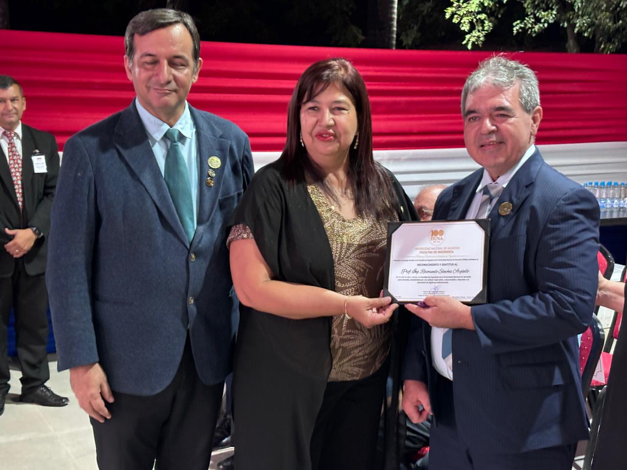 La ceremonia destacó el valor del escalafón docente —integrado por las categorías de Asistente, Adjunto, Titular y Titular Confirmado— como el eje que sostiene la formación de miles de ingenieros que hoy impulsan el desarrollo del Paraguay. Como símbolo de gratitud, cada docente recibió un pin conmemorativo y un ejemplar del libro «100 años de Historia de la FIUNA», del Ing. Juan Manuel Migliore.