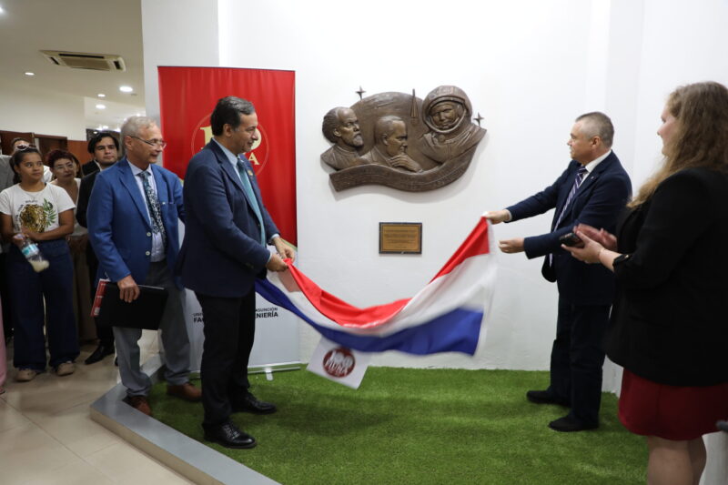 Como símbolo de la cooperación científica, el Embajador de la Federación de Rusia, S.E. Alexánder Pisarev, junto al Decano, Prof. Dr. Ing. Rubén López Santacruz, realizaron el descubrimiento oficial de un mural donado por la Embajada rusa. La obra retrata a Konstantin Tsiolkovsky, Sergei Korolev y Yuri Gagarin, reconocidos mundialmente como pioneros de la cosmonáutica teórica y práctica.