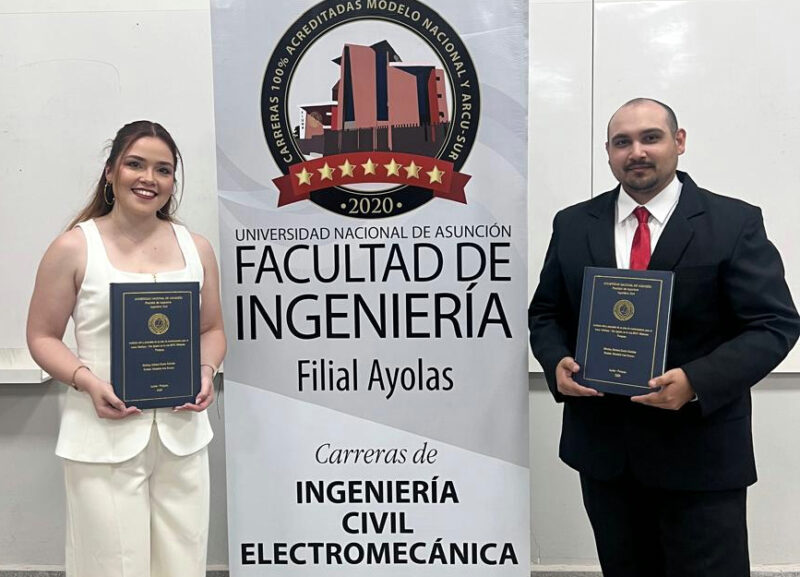 «Auditoría vial y propuesta de un plan de mantenimiento para el tramo Yabebyry – San Ignacio en la Ruta D057, Misiones, Paraguay», se denomina el Trabajo Final de Grado (TFG) presentado por los ahora ingenieros Sthefany Dahiana Duarte Cabañas y Rolando Sebastián Irala Romero, como prueba final para egresar de la carrera de Ingeniería Civil de la Facultad de Ingeniería de la Universidad Nacional de Asunción (FIUNA), Filial Ayolas.