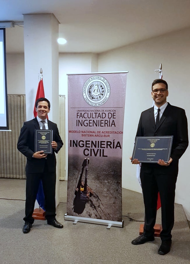 «Análisis de losas de grandes luces, con distintos métodos constructivos», se denomina el Trabajo Final de Grado (TFG) presentado por los ahora ingenieros Guido Horacio Gaona Molinas y Luis Milciades Cáceres Chaparro, como última prueba para egresar de la carrera de Ingeniería Civil de la Facultad de Ingeniería de la Universidad Nacional de Asunción (FIUNA).La exitosa defensa del trabajo se realizó el pasado miércoles 26 de diciembre en la Institución.